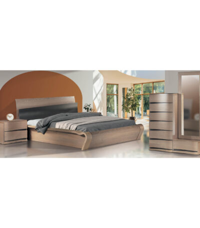 η κρεβατοκάμαρα Τζίνα με διαχρονικές καμπυλωτές γραμμές και μοντέρνο ντιζάιν, σε φυσικό ξύλο δρύς, είναι εδώ για να εντυπωσιάσει και τους πιο απαιτητικούς.