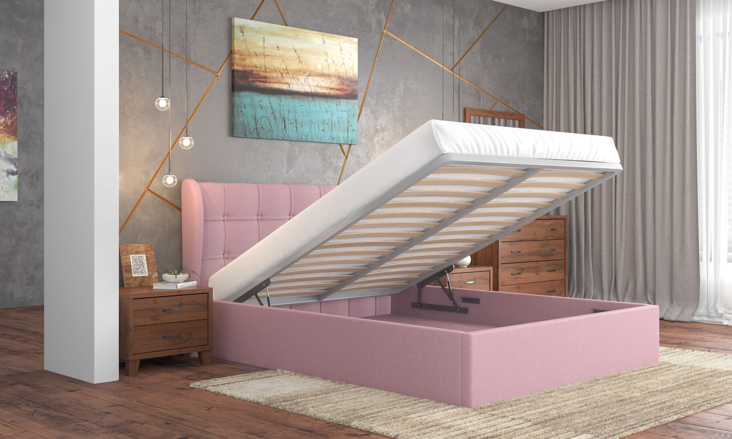 Κρεβάτι Νο88 – Μοντέρνο με Καμπύλο Καπιτονέ Κεφαλάρι & Αποθηκευτικό Χώρο