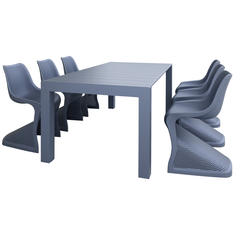 Set vegas τραπέζι 100X180/220 με 6 καρέκλες Bloom σε χρώμα dark grey του οίκου Siesta. Κατασκευασμένα από πολυπροπυλένιο για απόλυτη αντοχή. Ένα set με ιδιαίτερο desing και άριστη κομψότητα ιδανικό για επαγγελματική και για οικιακή χρήση. Κατάλληλο για εσωτερικό και εξωτερικό χώρο. Διατίθεται σε χρώματα white, taupe, dark grey και black.