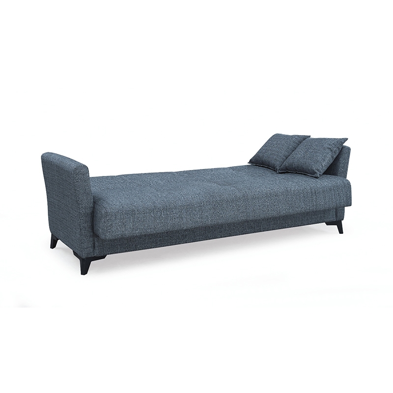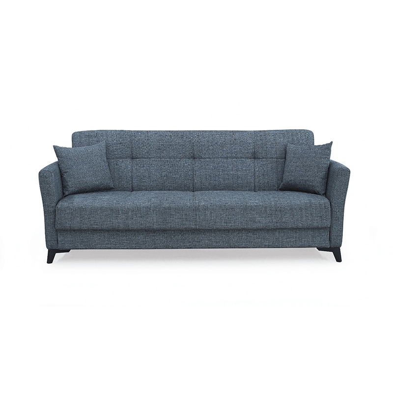 Amelia τριθέσιος καναπές/κρεβάτι με ύφασμα σε χρώμα grey, με ιδιαίτερο σχεδιασμό στην πλάτη και διακοσμητικά μαξιλάρια. Ένας καλαίσθητος και πολυχρηστικός καναπές, που μετατρέπεται με μία απλή κίνηση σε κρεβάτι για να φιλοξενήσει κάθε απρόσμενη διανυκτέρευση. Ο εσωτερικός ελεύθερος χώρος που υπάρχει κάτω από το κάθισμα είναι στη διάθεσή σας για να αποθηκεύσετε οτιδήποτε δεν χρειάζεστε καθημερινά και θέλετε να έχετε άμεση πρόσβαση ανά πάσα στιγμή.