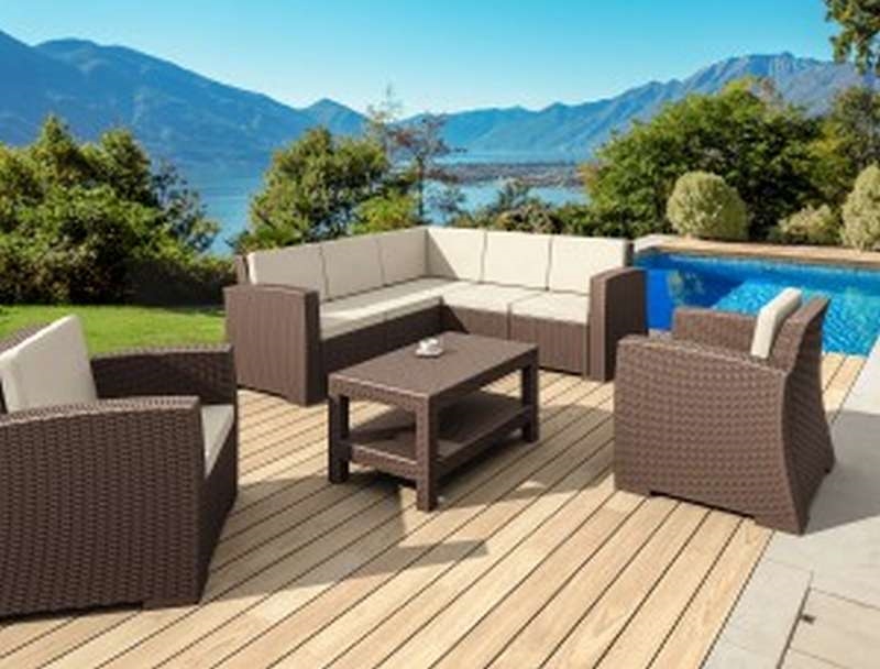 Γωνία MONACO του οίκου Siesta σε χρώμα brown με μαξιλάρια, K/D από υψηλής ποιότητας πολυπροπυλένιο με ενίσχυση από υαλώδεις ίνες (fiber glass) για απόλυτη αντοχή στον χρόνο. Διαθέτει UV protection για μέγιστη προστασία από τον ήλιο ώστε να μην αλλοιωθούν τα χρώματα. Κατάλληλη για εσωτερική και εξωτερική χρήση. Πιστοποιημένο προϊόν από τον Ιταλικό οίκο CATAS.