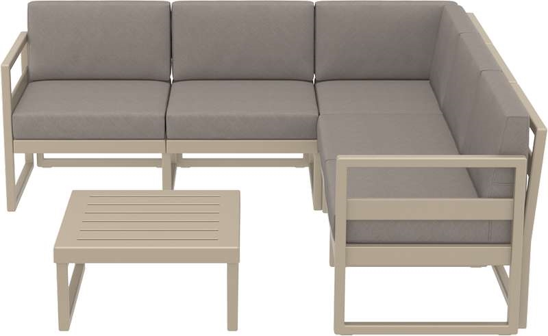 MYKONOS set γωνία του οίκου Siesta,σε χρώμα taupe.Το SET περιλαμβάνει 1 γωνιακό καναπέ,τραπέζι και μαξιλάρια.Από υψηλής ποιότητας πολυπροπυλένιο με ενίσχυση από υαλώδεις ίνες (fiber glass) για απόλυτη αντοχή.Χωρίς μεταλλικό σκελετό για μεγαλύτερη αξιοπιστία στον χρόνο.Διαθέτει UV protection για μέγιστη προστασία από τον ήλιο ώστε να μην αλλοιωθούν τα χρώματα.Κατάλληλο για εσωτερική και εξωτερική χρήση.Πιστοποιημένο προϊόν από τον Ιταλικό οίκο CATAS.