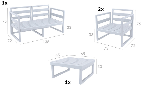 Διαστάσεις Προϊόντος: 138Χ72Χ75/73Χ72Χ75/65Χ65Χ33εκ.