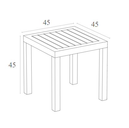 Τραπέζι OCEAN 45X45X45 του οίκου Siesta σε χρώμα taupe,κατασκευασμένο από πολυπροπυλένιο για απόλυτη αντοχή.Έχει UV προστασία για τις ακτίνες του ηλίου,δεν περιέχει μεταλλικά στοιχεία στον σκελετό, ώστε να μην υπάρξει πρόβλημα οξείδωσης.Κατάλληλο για εσωτερική και εξωτερική χρήση.