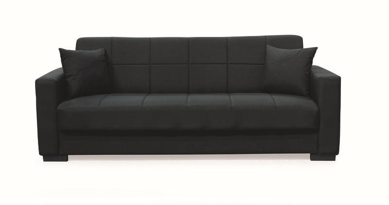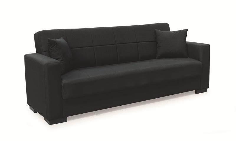 Rover τριθέσιος καναπές/κρεβάτι σε black χρώμα με διακοσμητικά μαξιλάρια που προσθέτουν στυλ και άνεση. Ένας καναπές που συνδυάζει εργονομία, ομορφιά και προσδίδει ζεστασιά στη διακόσμηση του χώρου.Μπορεί να συνδυαστεί αρμονικά με τον διθέσιο καναπέ της ίδιας σειράς για ένα ολοκληρωμένο σετ. Ο εύκολος στη χρήση μηχανισμός επιτρέπει την μετατροπή του καναπέ σε κρεβάτι ανά πάσα στιγμή. Ο αποθηκευτικός χώρος που υπάρχει εσωτερικά του καναπέ εξυπηρετεί στην τοποθέτηση αντικειμένων, βοηθώντας μας να κρατήσουμε το χώρο σε τάξη.